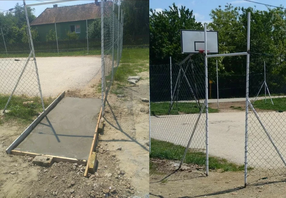 Do sada ste popravili mostić na ulazu u selo, stradao u onim strašnim poplavama 2014. godine. Potom ste rešili da sredite tri decenije star košarkaški teren, kao i fudbalski teren FK Posavina. Šta ste do sada svi zajedno uredili?