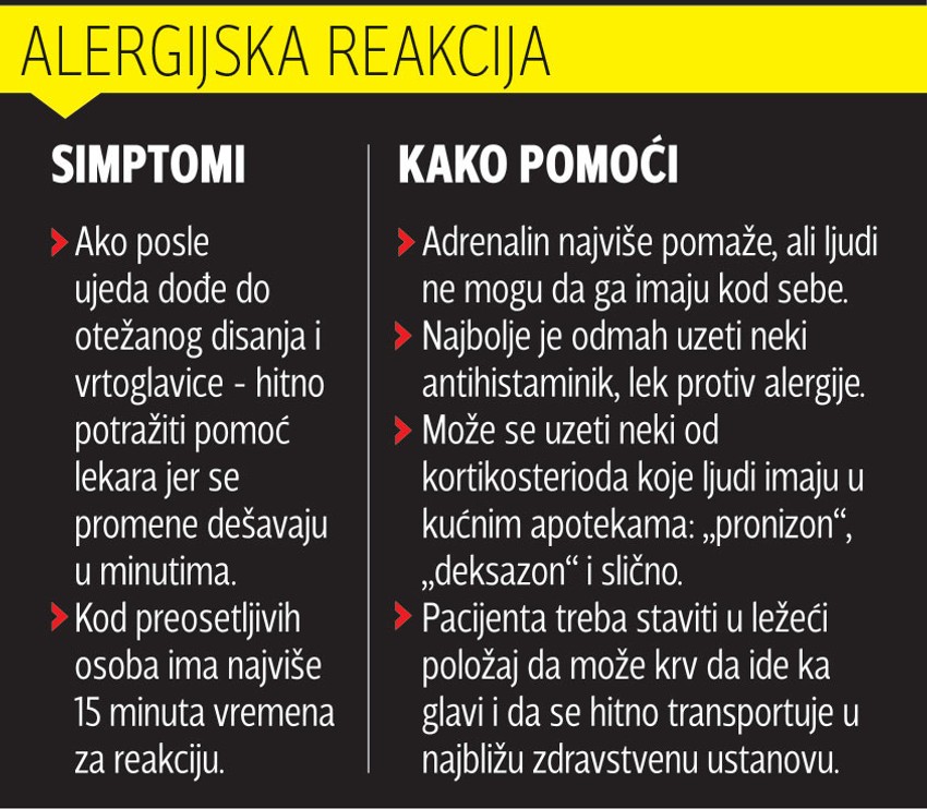 Od anafilaktičkog šoka, burne alergijske reakcije izazvane ujedima insekata, godišnje premine nekoliko ljudi u Srbiji, a Igor Pavlović (35) iz Gornjeg Neradovca kod Vranja poslednja je žrtva.