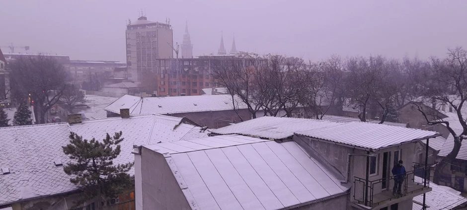 U Novom Sadu pada prvi sneg. Za sada se ne zadržava na kolovozima ili trotoarima ali ako nastavi ovim tempom uskoro će se zabeleti krovovi vojvođanske prestonice.