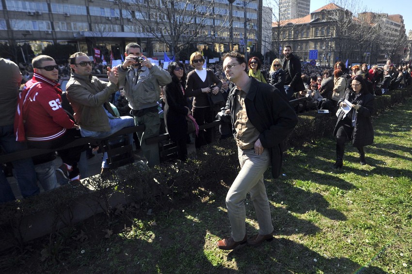 Verbić je zatim rekao okupljenima da im se neće obratiti sa improvizovane bine u parku, ali je zatim pozvao predstavnike dva sindikata da dođu kod njega u Ministarstvo prosvete.