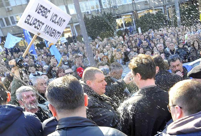 Ministar prosvete, nauke i tehnološkog razvoja Srđan Verbić napadnut je u parku Manjež na protestu prosvetnih radnika. Kada je prišao mestu okupljanja ministra su gnevni prosvetni radnici počeli da prskaju vodom, cimaju i guraju. Nakon razgovora predstavnika dva sindikata i ministra prosvete Srđana Verbića, nije postignut dogovor, pa se protest u školama nastavlja.