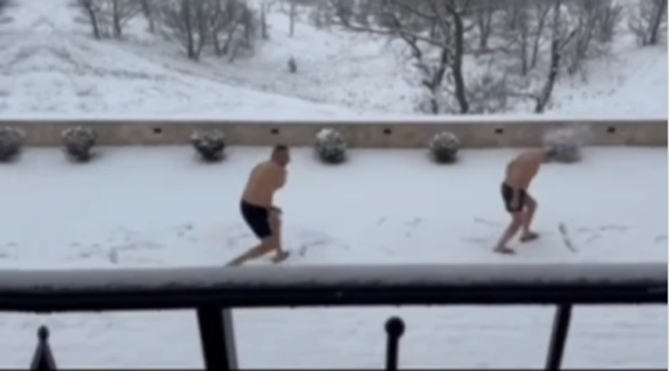 Sa Zlatibora danas nam stiže nesvakidašnji snimak dvojice Novosađana kako se, imajući samo gaće na sebi, grudvaju, zabavljaju i vežbaju na snegu. Njima niske temperature očigledno ne mogu ništa, te su odlučili da u snegu uživaju na "ruski" način - bez odeće i bosi na -4 stepena Celzijusovih, koliko danas iznosi temperatura na Zlatiboru.