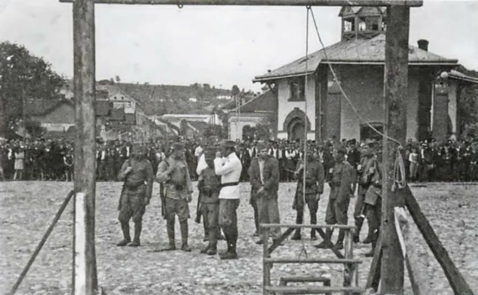 Po naređenju 714 pešadijske divizije danas u 10 časova i 50 minuta Srpska državna straža obesila je javno, na pijaci u Valjevu, vođu komunističke bande – Filipovića.
