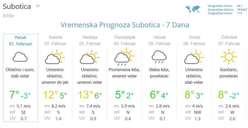 - U subotu, 2. februara, tokom većeg dela dana biće umereno i potpuno oblačno, vetrovito, sa otopljenjem, koje će inicirati naglo topljenje snega - najavljuju iz Republičkog hidrometeorološkog zavoda (RHMZ).