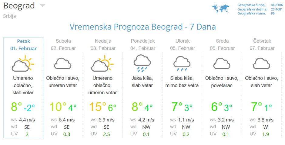 - Očekuju nas temperature od 10 do 17 stepeni, ali i umeren do pojačan jugozapadni vetar. U Banatu jačina vetra može dostići i do 100 kilometara na čas - rekao je Đurić za "Blic".