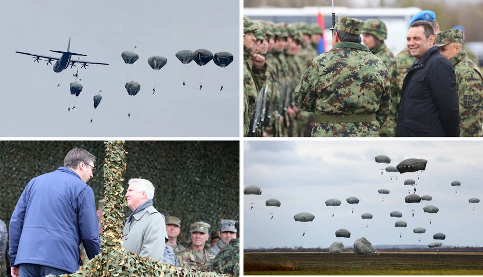 - Ponosan sam na srpske vojnike koji su pokazali da sa padobranima T11 iz aviona Herkules c130 mogu da skaču. To kažem, zato što mi nemamo padobrane sa kupolama i skačemo sa takozvanim krilo padobranima i ovde je mnogo veća brzina pri sletanju. Videli ste da su to tvrdi doskoci, ali naši momci pokazali su odličnu pripremljenost - rekao je predsednik nakon vežbe.