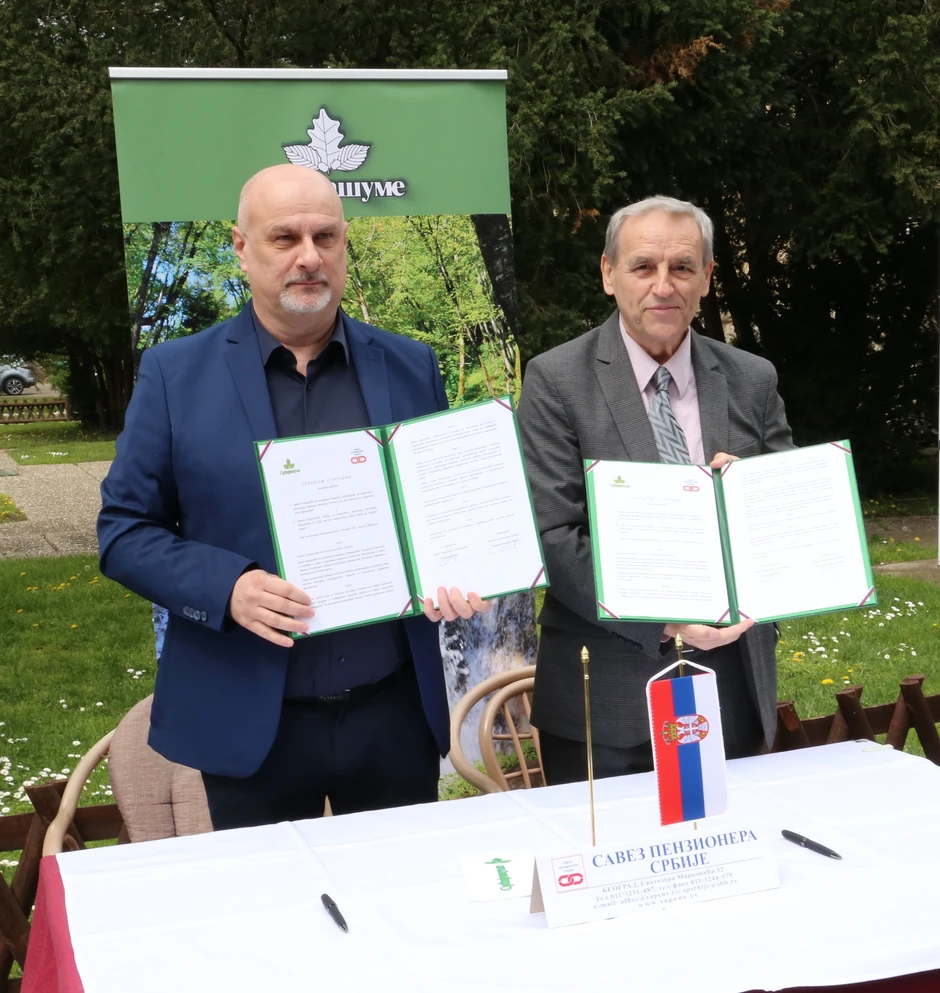 V. d. direktora JP „Srbijašume“ Igor Braunović i predsednik Saveza penzionera Srbije prof. dr Andreja Savić potpisali su Sporazum o saradnji JP „Srbijašume“ i Saveza penzionera Srbije koji zastupa interese 169 udruženja penzionera opština, gradova i pokrajina. Sporazum je potpisan 11. aprila 2023. godine u poslovnom klubu „Košutnjak“.