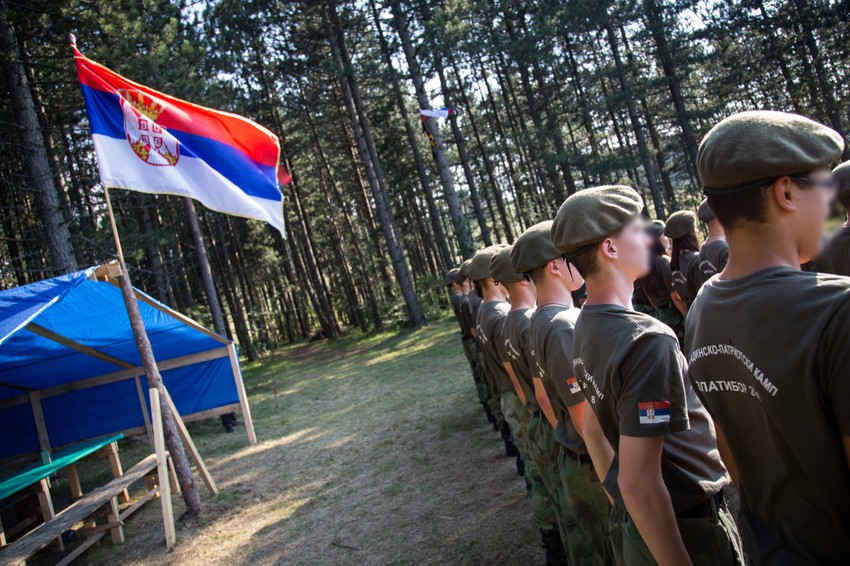 Fizičke vežbe, sklekovi, gađanje, trčanje, korišćenje oružja, neke su od stvari kojima se mališani na ovom mestu bave već nekoliko dana. Ovo je inače prvi put u Srbiji, da mladi, od kojih niko nema više od 24 godine, danima pohađaju vojnu obuku i uče patriotske lekcije iz srpsko-ruske istorije pod okriljem ratnih veterana iz Srbije i Rusije, piše NIN, kojii je na licu mesta video i kako kamp izgleda.