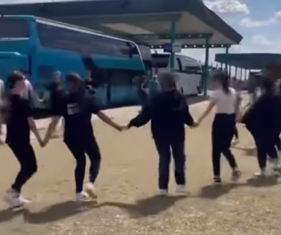 Folklorni ansambl sa Kosova i Metohije odlučio je da čekanje na graničnom prelazu pretvori u pravi spektakl. Oni su izašli iz autobusa na Horgošu, uhvatili se za ruke i zaigrali kolo pokraj puta.