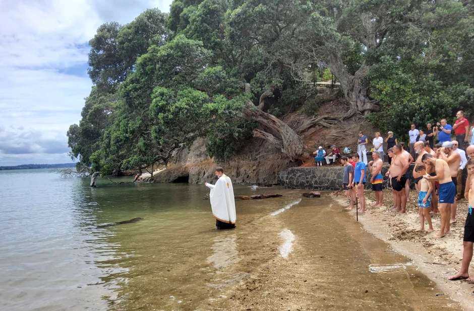 Kako javlja Nebojša, Srbin koji živi na Novom Zelandu, otac Sava Antić je posle očitane molitve blagoslovio vodu i pozvao 26 plivača da se takmiče u plivanju za Časni krst.
