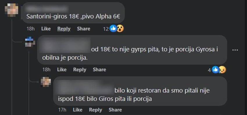 Međutim, najveću pažnju privukao je komentar jedne članice koja tvrdi da je isti specijalitet na ostrvu Santorini platila čak 18 evra!