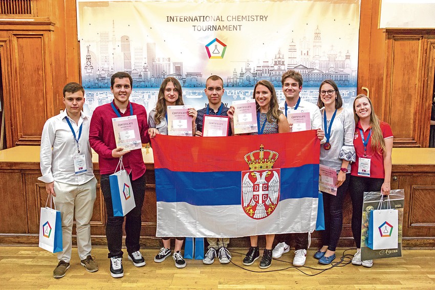 - Međunarodni hemijski turnir je takmičenje koje se održava svake godine na univerzitetu "Lomonosov" u Moskvi. Ove godine je naš tim "In Our Elements" koji predvodimo Anamarija Nikoletić i ja, osvojio srebrnu medalju. Ponosni smo i na tri pojedinačne nagrade koje su osvojili Filip, Dunja i Mihailo. U poslednjem delu takmičenja učestvovalo je 11 ekipa iz celog sveta. Rešenja koja smo predstavili daleko prevazilaze gradivo srednje škole i program osnovnih studija hemije - objašnjava za "Blic" mentor Uroš Stojiljković.