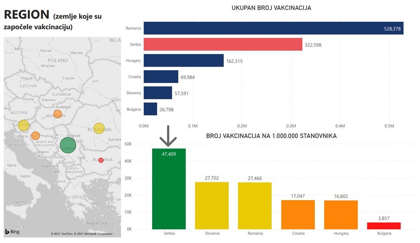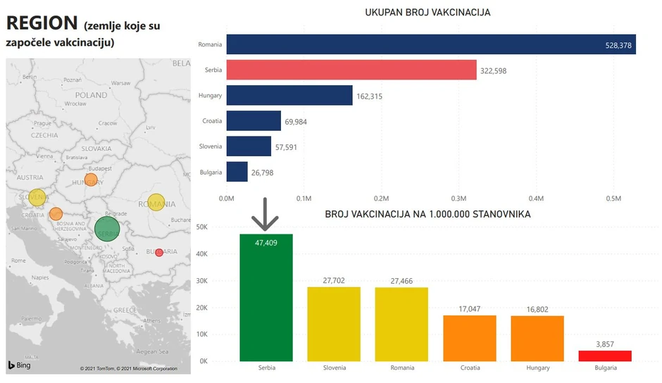 U regionu Srbija je prva po broju vakcinisanih na milion stanovnika, a slede Rumunija i Slovenija.