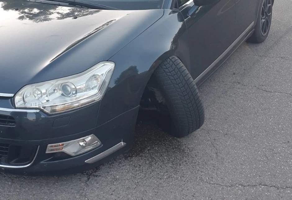 - Nisam mogao da verujem šta vidim. Levi točak mi je bio potpuno odvojen od automobila, iskrivljen nekako popreko. U trenutku kada sam u vožnji čuo prasak, mislio sam da je pukla guma, ali ovo nisam mogao ni da zamislim - navodi Dušan.