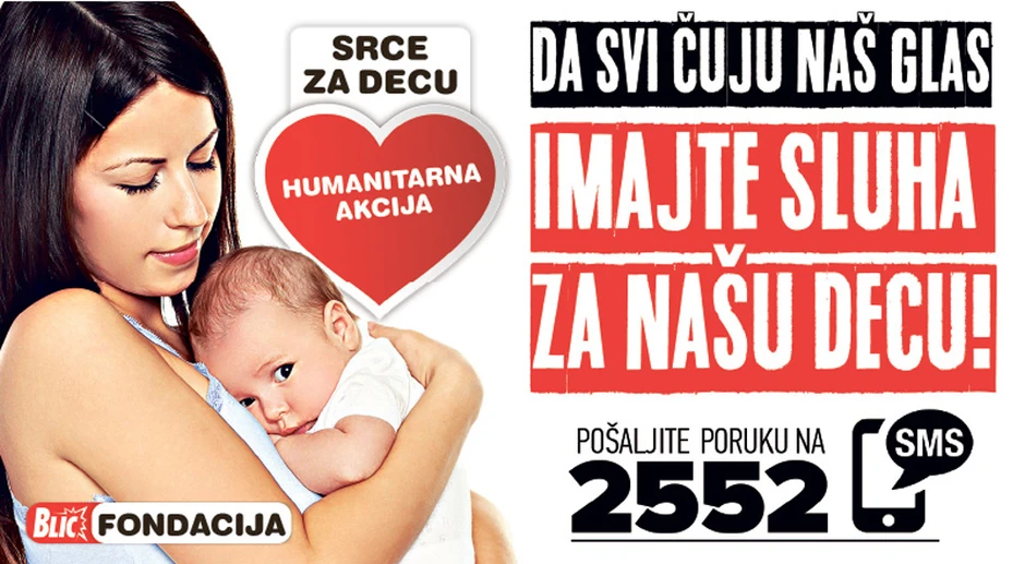 Aparate za skrining sluha poseduju svega tri-četiri porodilišta od ukupno 58, koliko ih ima u Srbiji. Zbog nedostatka tih uređaja, oštećenje sluha kod dece se kasno otkrije, a posledice toga mogu da budu znatno veće nego kad bi se gluvoća otkrila odmah po rođenju. Pomozimo da svako dete može da čuje muziku, da peva, da se glasno raduje! Od 4. marta do 30. aprila ove godine, sav prihod od našeg humanitarnog broja 2552 i sve uplate na tekuće račune "Blic fondacije" biće iskorišćeni za kupovinu aparata za skrining sluha kod beba. Detaljnije informacije o tome kako možete da se uključite možete videti OVDE. Pomozimo da naša deca budu zdrava!