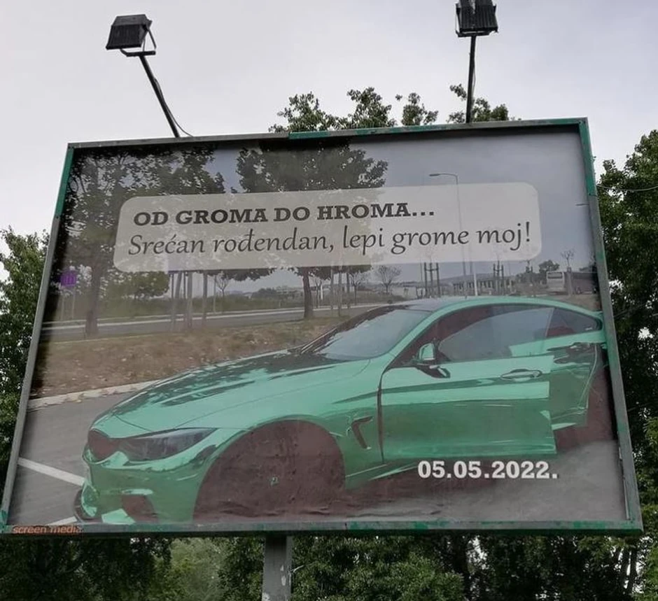 "Od groma do hroma... Srećan rođendan, lepi grome moj!", glasi poruka na bilbordu.