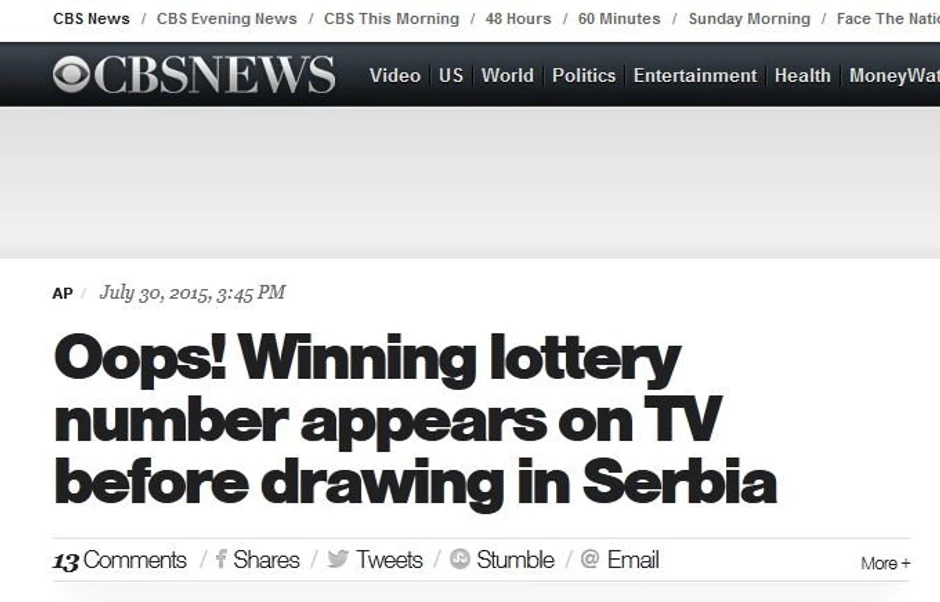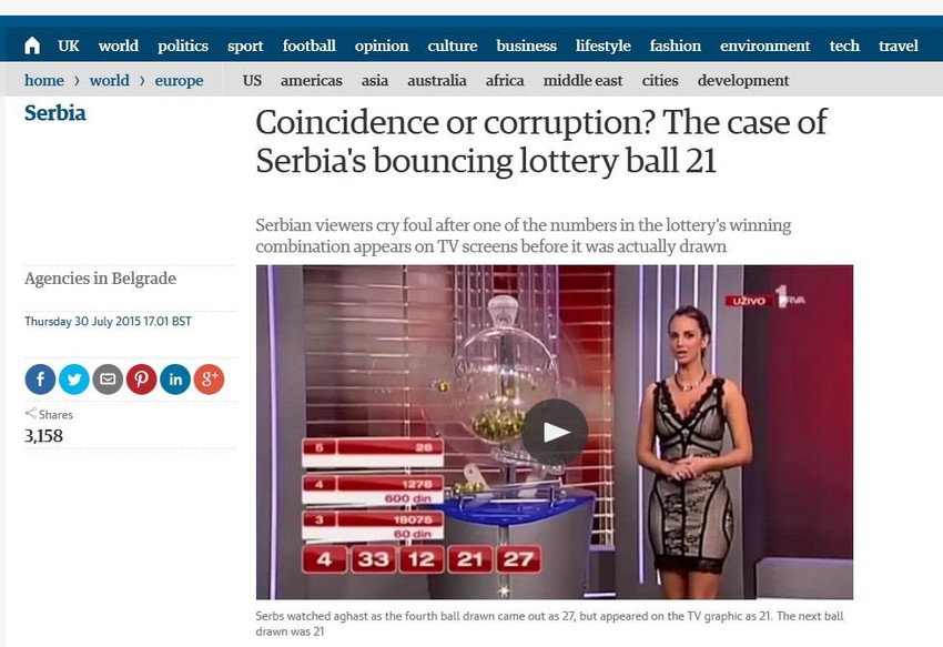 "Greška? Moguće, ali ovakav incident implicira odgovornost 'mračnijih sila'", piše o loto incidentu u Srbiji britanski tabloid "Miror".