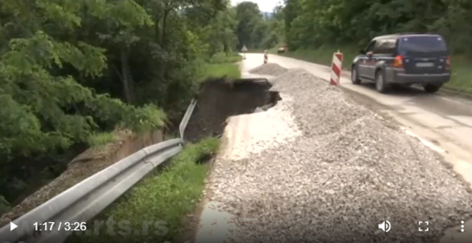 "Ovo se urušila zemlja, ostao asfalt da visi u vazduhu. Prva kola koja bi prošla ja verujem da bi sve otišlo u Moravu", kaže Milišić.