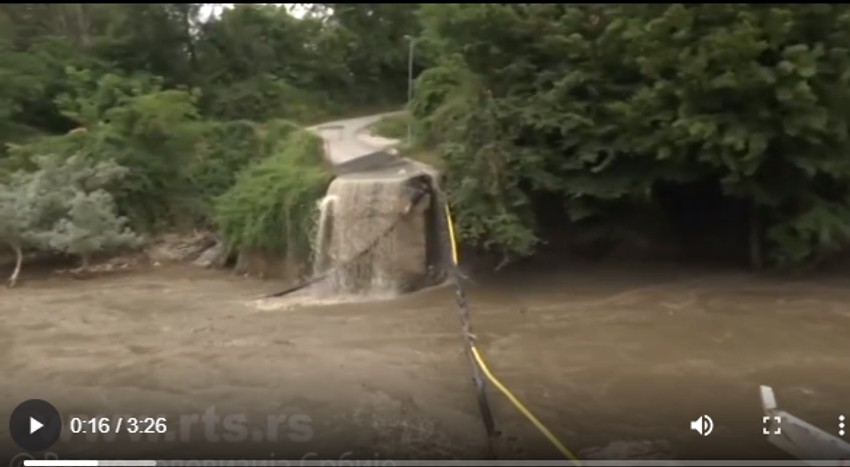 Vodena stihija nosila je sve pred sobom. Gordana Jovanović videla je trenutak kada se urušio ovaj most u naselju Senjak koji je decenijama spajao dve obale. Do voćnjaka i imanja meštani naselja Šume moraju obilaznim putem nekoliko kilometara odavde.