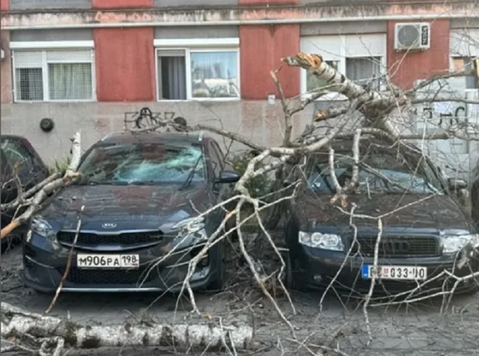 Kako se vidi na fotografijama objavljenim na Instagram stranici 192.rs, veliko granje i delovi stabla obrušili su se na dva automobila ispred stambene zgrade.