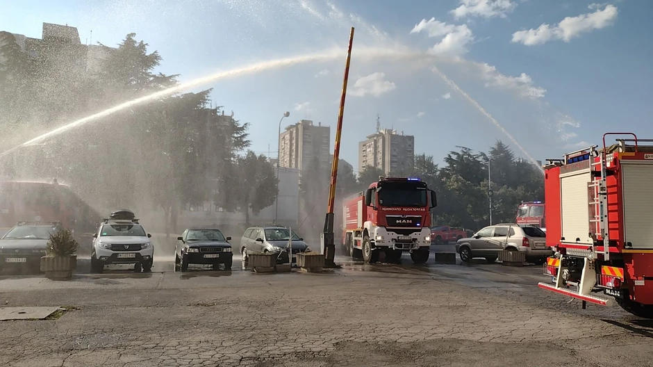 Obične Nišlije pozdravljaju vatrogasce sa sirenama dok su niški vatrogasci svojim kolegama priredili spektakularni doček vodenim topovima.