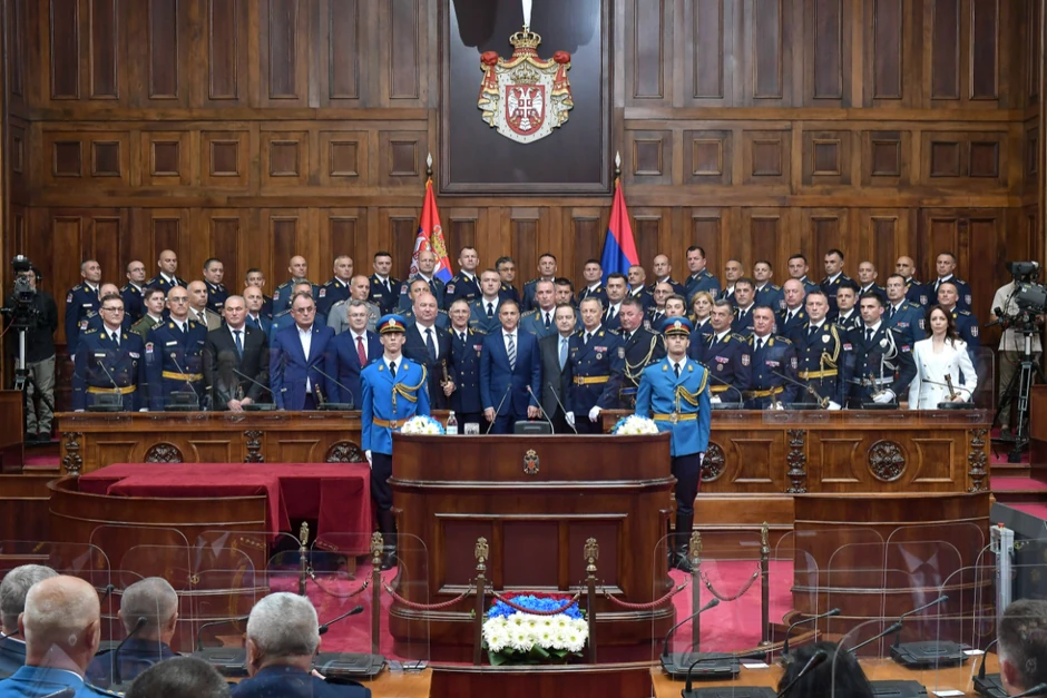 Ministar odbrane Nebojša Stefanović i načelnik Generalštaba Vojske Srbije general Milan Mojsilović danas su prisustvovali svečanosti povodom završetka usavršavavanja polaznika 10. klase Visokih studija bezbednosti i odbrane i 64. klase Generalštabnog usavršavanja Škole nacionalne odbrane u Domu Narodne Skupštine.