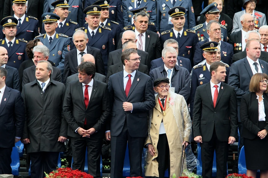 U prvom redu centralne bine na vojnoj paradi, tik uz premijera Vučića, stajao je i jedan simpatični deka.