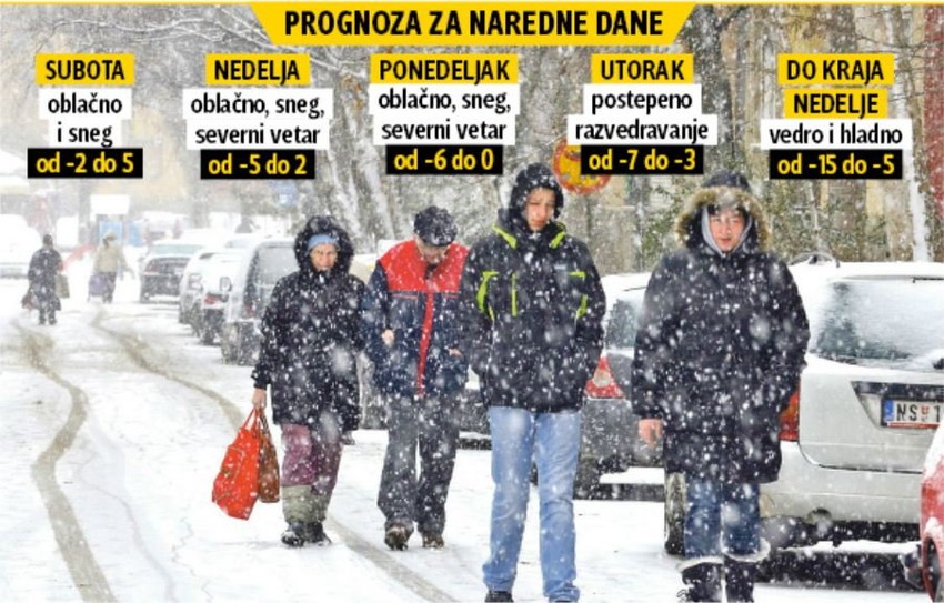 Od utorka do kraja nedelje očekuje se razvedravanje, ali s temperaturama od -15 do -5 stepeni. Očekuje se da maksimalna dnevna temperatura bude oko nule.