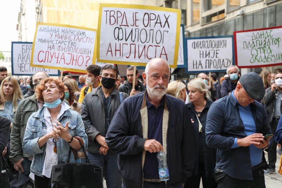 Ministru prosvete Mladenu Šarčeviću poslat je zahtev da odmah razreši dužnosti svoju savetnicu a koja je bivša dekanka Filozvoskog fakulteta - Ljiljanu Marković, "zato što je ona svojim postupcima osramotila i fakultet i čitavu akademsku zajednicu".