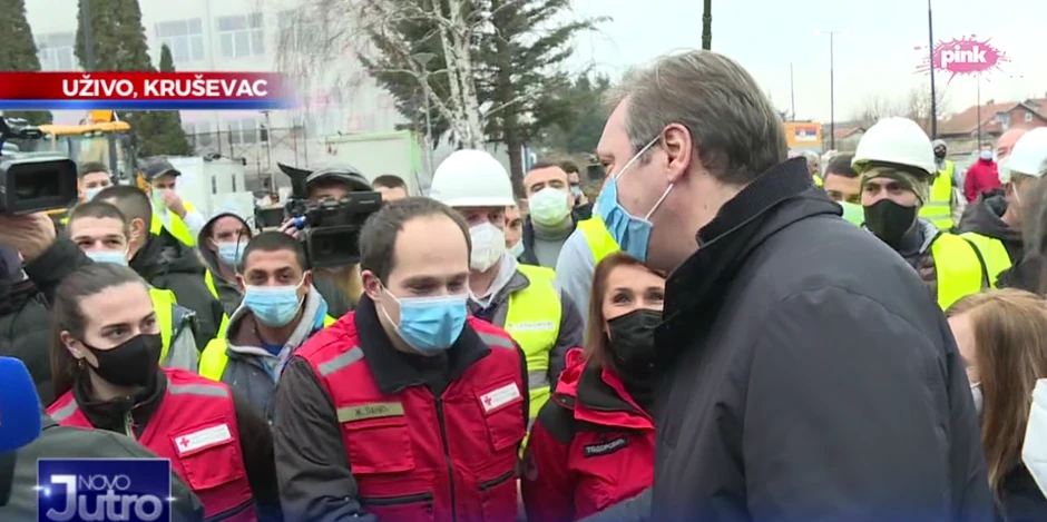Predsednik Srbije Aleksandar Vučić prisustvuje danas otvaranju nove kovid bolnice u Kruševcu.