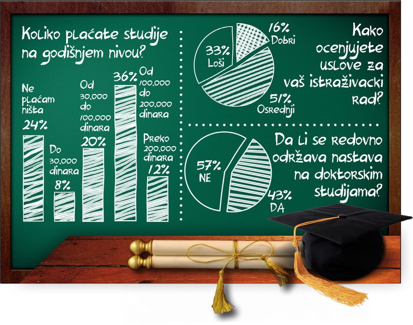 Više od 64 odsto doktoranada smatra da nema perspektive u Srbiji, dok više od 36 odsto ozbiljno planira da napusti Srbiju, rezultati su Ankete o stanju na doktorskim studijama u Republici Srbiji, koju je sprovelo Udruženje studenata doktorskih studija i mladih istraživača Srbije.