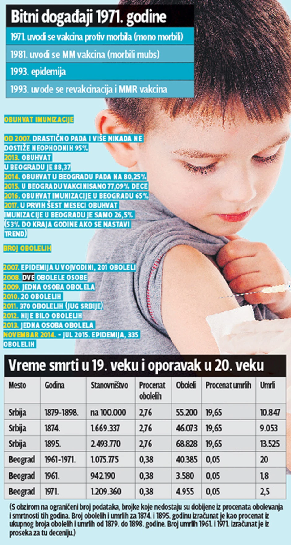Naš poznati epidemiolog, prof. dr Branislav Tiodorović upozorava da je jedva 50 odsto dece u Srbiji vakcinisano, a situacija je najgora u velikim gradovima kao što je slučaj u Nišu, Kragujevcu i Beogradu, gde je samo 30 odsto mališana primilo MMR cepivo.