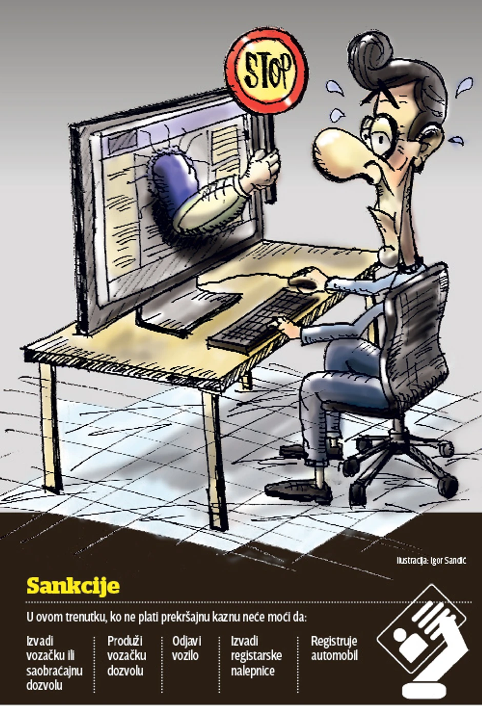 Kako “Blic” saznaje, svi prekršajni sudovi sada su umreženi, a sistem je povezan i sa ostalim organima, zasad sa Upravom za trezor, Upravom saobraćajne policije i Centralnim registrom obaveznog socijalnog osiguranja. Unosom imena, prezimena i jedinstvenog matičnog broja u prazna polja aplikacije građani će moći da vide da li imaju neki neplaćeni prekršaj, kao i da dobiju instrukcije za uplatu kako bi izmirili obaveze. Građani koji imaju neplaćeni prekršaj biće onemogućeni da dobiju određene dozvole, uključujući i vozačku ili saobraćajnu dozvolu.