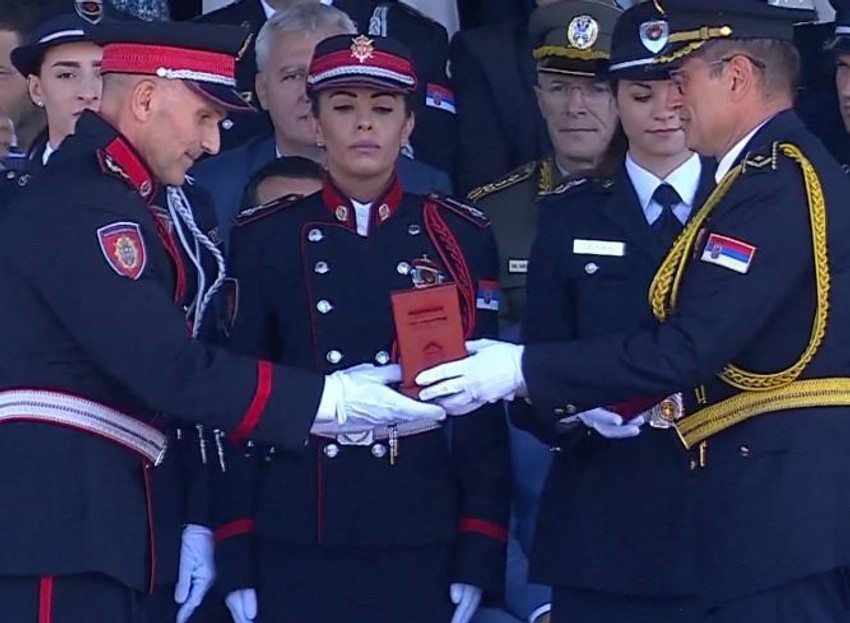 Predsednik Srbije obavio je počasnu smotru uz pratnju ministra MUP uz taktove koračnice "Pozdrav komandantu".