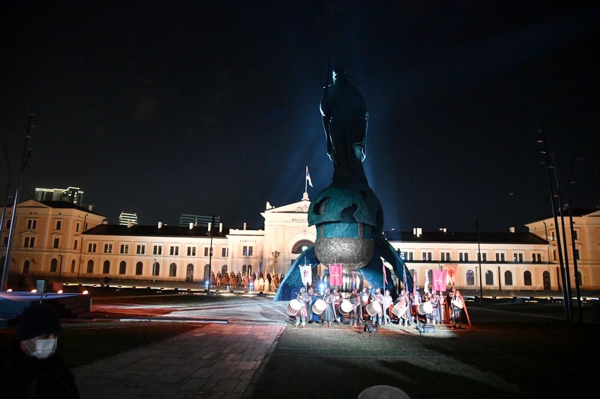 Na Savskom trgu u Beogradu intoniranjem himne Srbije "Bože pravde" počela je svečana ceremonija otkrivanja spomenika jednom od najznačajnijih srpskih vladara, osnivaču srednjovekovne srpske države, velikom županu Stefanu Nemanji.