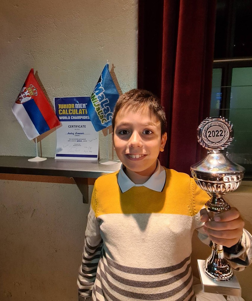Andrej je učenik petog razreda osnovne škole “Vuk Karadžić” iz Sremčice, a drugi najbolji rezultat na svetu ostvario je na svetskom juniorskom šampionatu, koje je u organizaciji nemačkog društva za talente okupilo najbolje matematičare širom sveta.