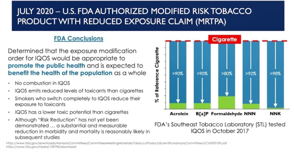 Kako je podsetio, Američka agencija za hranu i lekove (FDA) nedavno je svrstala IQOS sistem, proizvod koji zagreva a ne sagoreva duvan, u kategoriju "duvanskih proizvoda modifikovanog rizika" (MRTP). Prema FDA naučne studije pokazuju da potpuni prelazak sa konvencionalnih cigareta na IQOS smanjuje izloženost štetnim i potencijalno štetnim materijama.