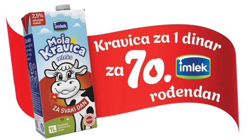 Povodom 70 godina uspešnog poslovanja, kompanija Imlek je odlučila da jedno veliko „Hvala!“ uputi svim svojim vernim potrošačima koji su doprineli ovom višedecenijskom uspehu, i to specijalnom nacionalnom akcijom. U periodu od 1. do 30. juna, svi oni koji ostvare kupovinu nekog od omiljenih Imlek proizvoda u iznosu većem od 500 dinara, imaće pravo da za samo jedan dinar kupe Moja Kravica mleko od 1l sa 2,5% mlečne masti.