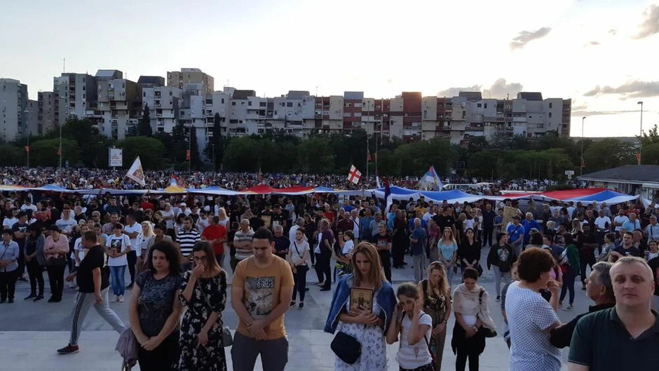 Oni su uzvikivali "Ne damo svetinje" i pevali crkvene pesme.