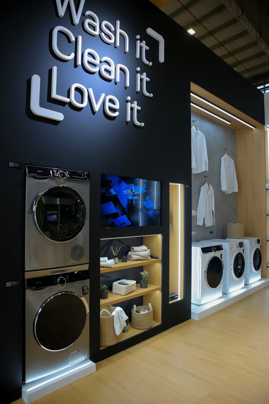 Posetioce takođe očekuje inovativno iskustvo pranja i sušenja veša zahvaljujući Tesla Onyx seriji. Pod sloganima glavnih karakteristika "Čisto i bezbedno" i "Nega parom", Tesla je predsatvila karakteristike Hygiene Pro sistema koji veš održava čistim i dezinfikovanim.