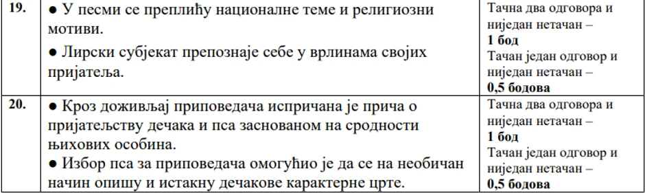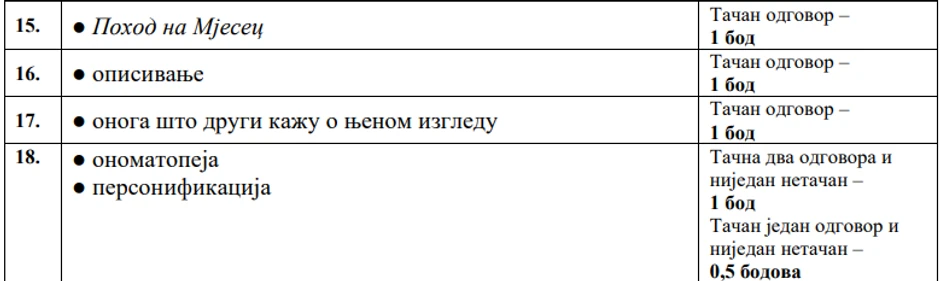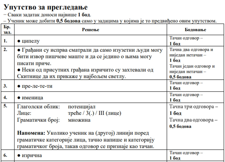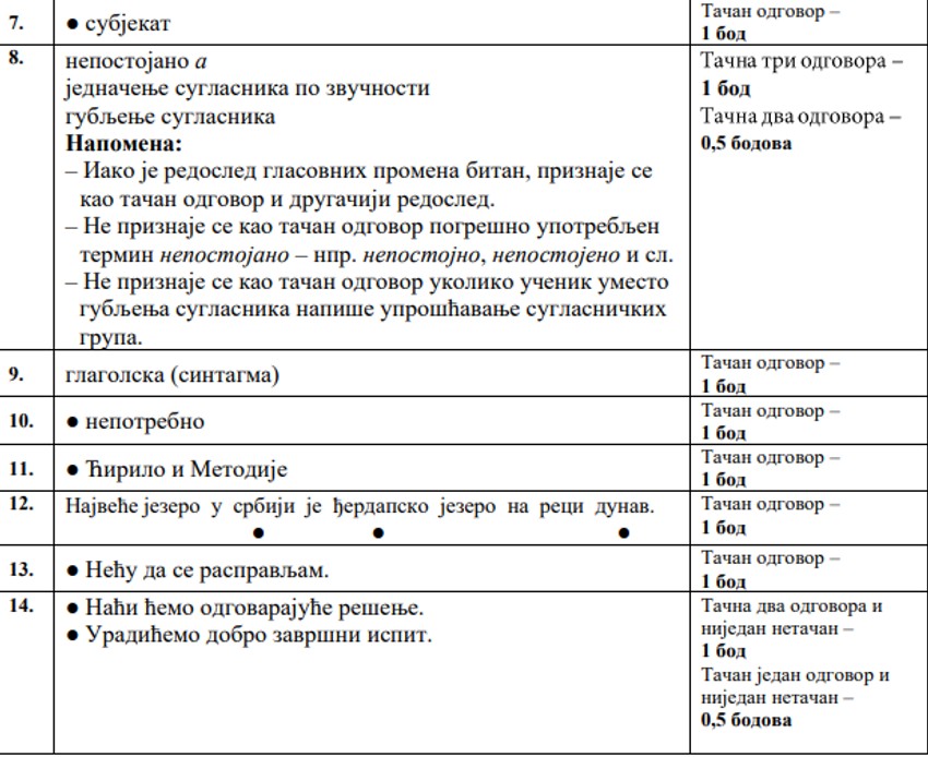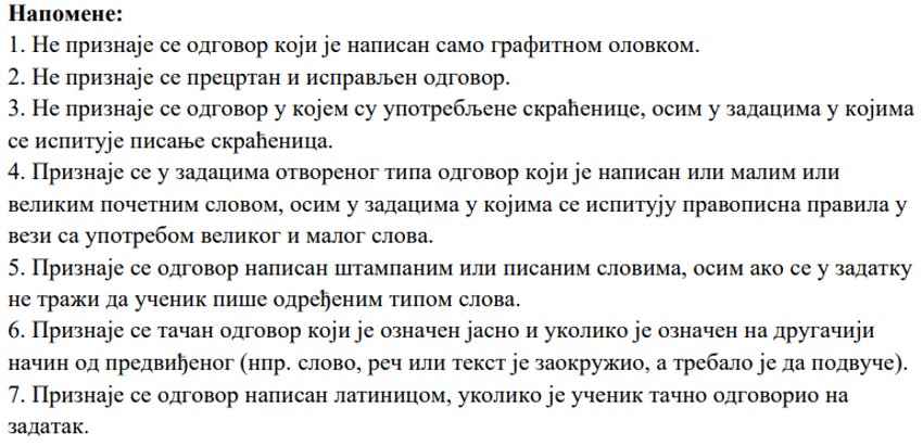 Ovo su rešenja testa iz srpskog jezika i književnosti koji su danas, prvog dana male mature, radili učenici osmih razreda osnovne škole.