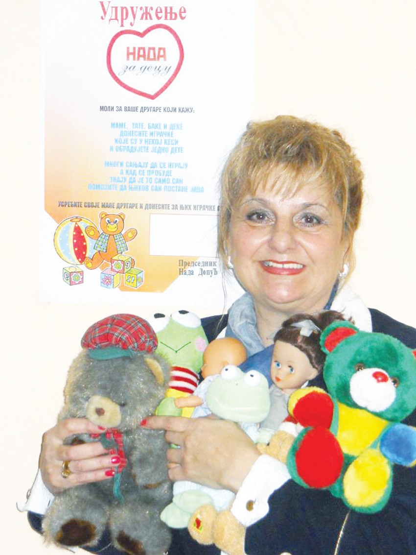 Sve je počelo od ideje da sa prijateljima odnesem igračke i torte u Dom za decu sa posebnim potrebama u Sremčici. Samo ta jedna poseta bila je dovoljna da moj život dobije neočekivan smisao. Naime, nakon što smo deci podelili poklone, jedna devojčica mi je prišla, uhvatila me za ruku i povela ka svojoj sobi. Otvorila je ormar, iz njega izvadila krstić, stavila mi oko vrata i počela da me ljubi - takav trenutak se ne zaboravlja - priča nam Beograđanka Nada Dopuđa (65), koja svoje penzionerske dane provodi pomažući deci.