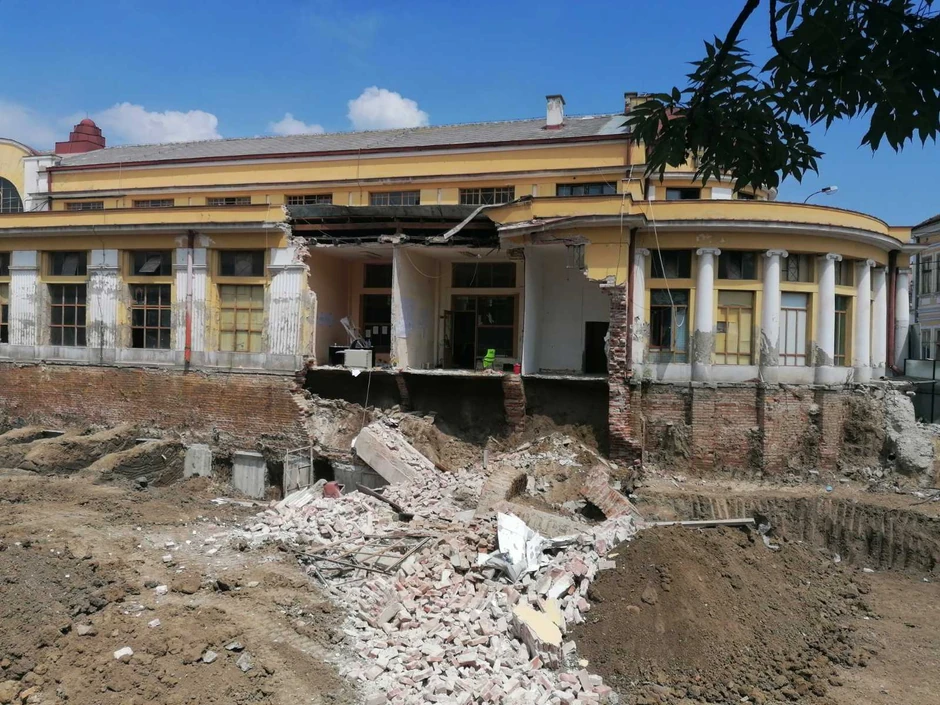 Prilikom rekonstrukcije zgrade Centralne tržnice, koja se kao arhitektonski vredna građevina s početka 20. veka nalazi pod zaštitom države, jutros se obrušio zid koji je potkopan radi izgradnje podzemne garaže.