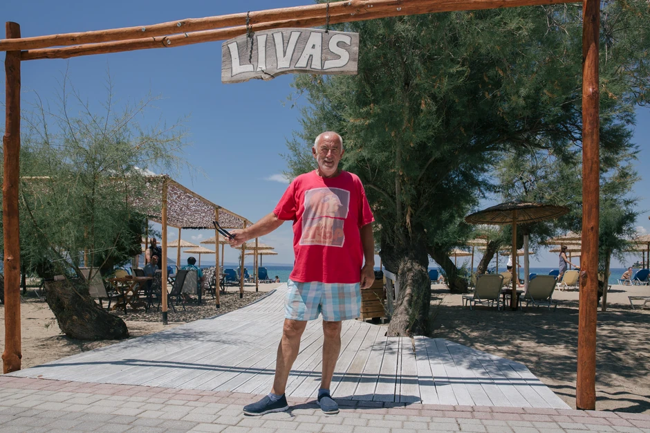 U Neos Marmarasu zatekli smo na polupraznoj plaži Hristos Trifona, vlasnika plažnog bara "Livas".
