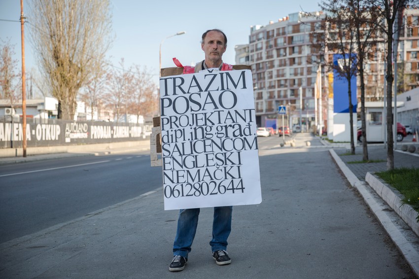 Ostao sam bez posla pre sedam godina, potrošio sam i poslednji dinar ušteđevine i ništa drugo mi nije preostalo nego da izađem na beogradske ulice sa ovakvim oglasom, kaže Milan Radojičić (54) iz Crne Trave.