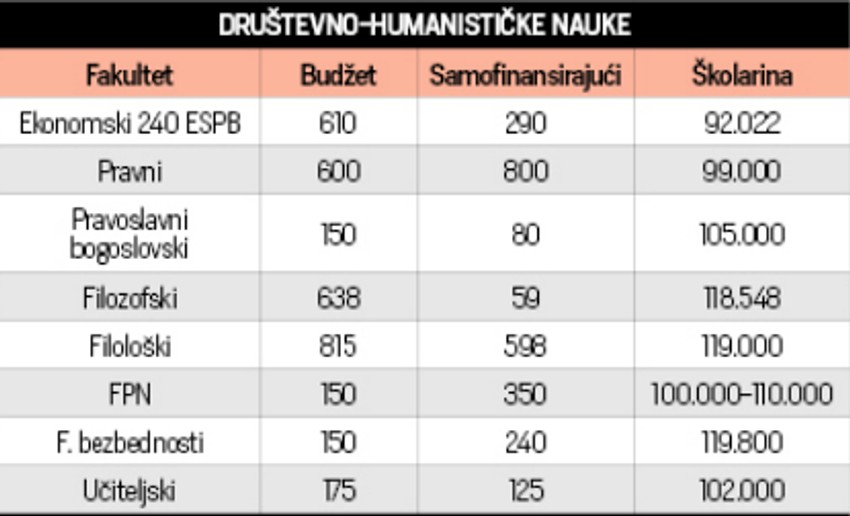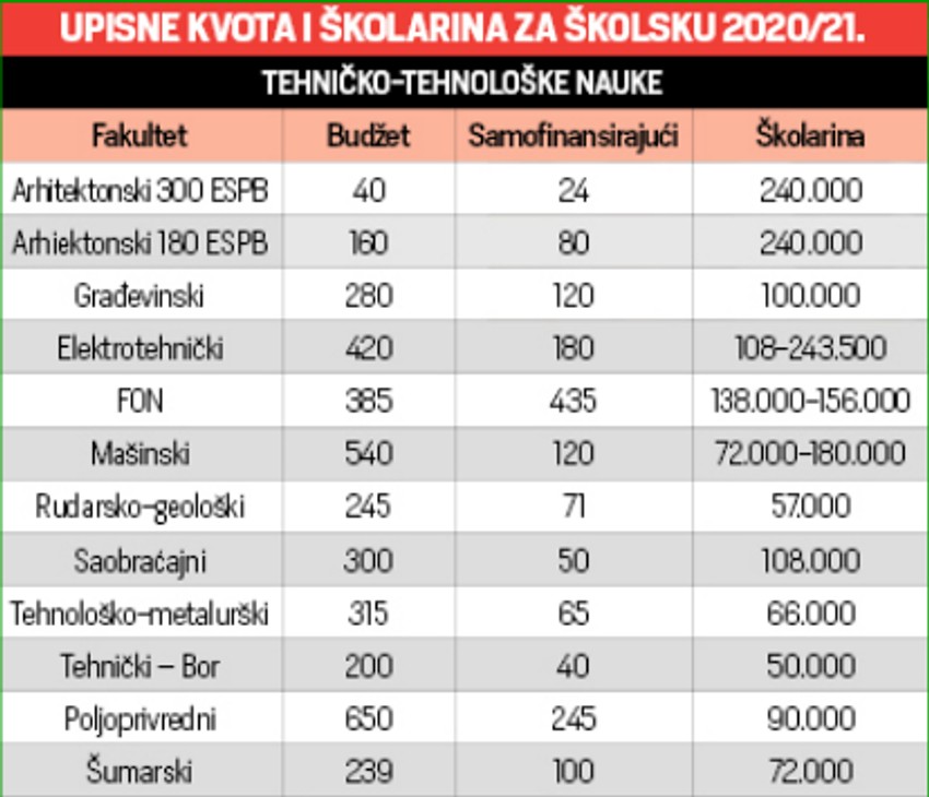 Ipak, kada je reč o budžetskim mestima, sa Univerziteta napominju da Vlada Republike Srbije nije donela Odluku o broju studenata za upis u prvu godinu studijskih programa koji se finansiraju iz budžeta za visokoškolske ustanove čiji je osnivač Republika za školsku 2020/2021. godinu. Ukoliko mesta na budžetu ne budu odobrena, dodaće se broju samofinansirajućih studenata.