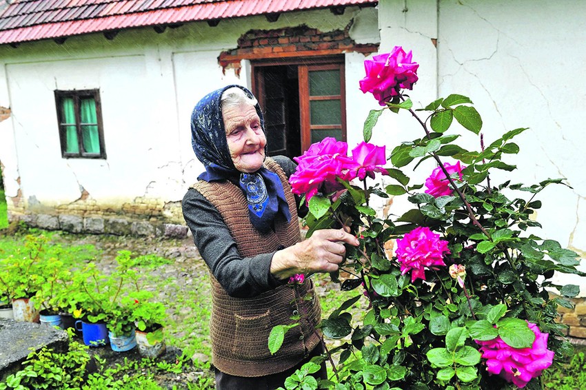 Pregazila je osam i po decenija, a vitalna je i otresita. U kući, ko zna kada pravljenoj, vreme se odavno zaustavilo. Drveni kredenci, preko kreveta starinski ćilimi, pod nogama daske, po zidovima odavno izbledele slike. Na njima pokojni suprug, deca, i ona sa njima.