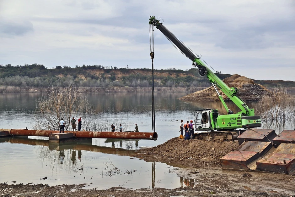 Pumpe plutaju na vojnim pontonima, a kako posao odmiče, jezero se udaljava od reke tako da se moraju pomerati i cevovodi, što je vrlo zahtevan posao. Na jednom lageru već čekaju ogromne metalne cevi, od kojih je svaka dugačka dvanaest metara i teška četiri tone, a već je postavljeno devet takvih cevovoda.