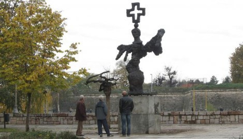 Gradonačelnik Niša Zoran Perišić i generalni vikar fra Lepolod Rohmes otkrili su danas u Nišu spomenik posvećen obeležavanju 17 vekova od donošenja Milanskog edikta koji gradu poklanja Katolička crkva.