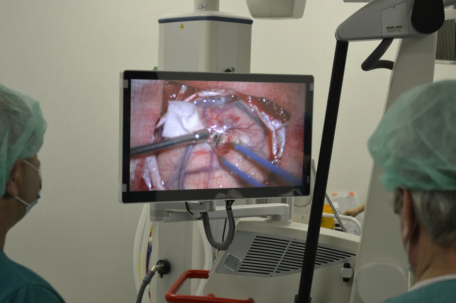 Prvu operaciju tumora na mozgu uz pomoć "kjuza" aparata koji usisava tumor, ali čuva krvne sudove i moždano tkivo, obavila je danas u niškom KC doktorka Danica Grujičić iz KCS, uz asistenciju direktorke Klinike za neurohirurgiju Vesne Nikolov.